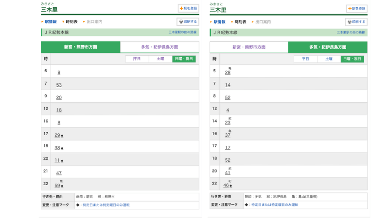 さらに、電車の本数がかなり少なく、朝は6時台と7時台に1本ずつのみ。