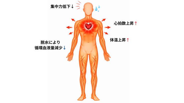 高水温環境では、身体が発生した熱を十分に逃がせなくなることが問題になります。